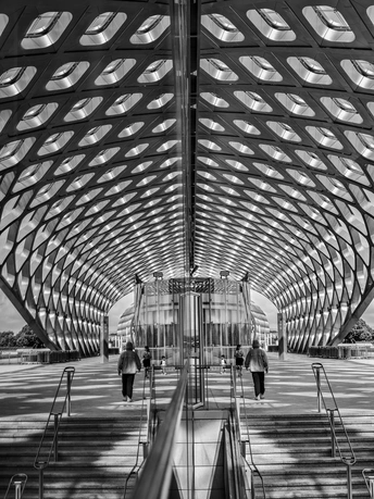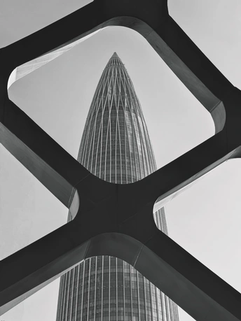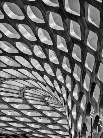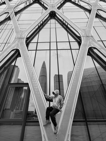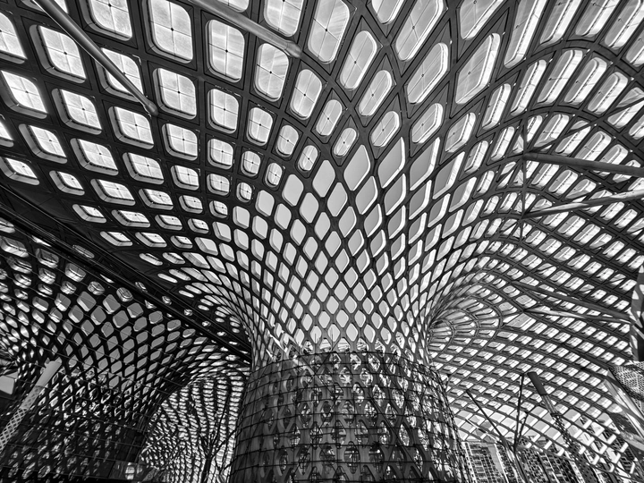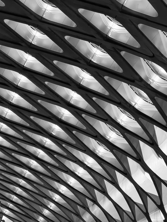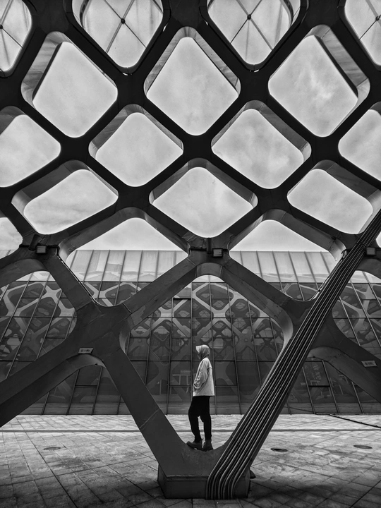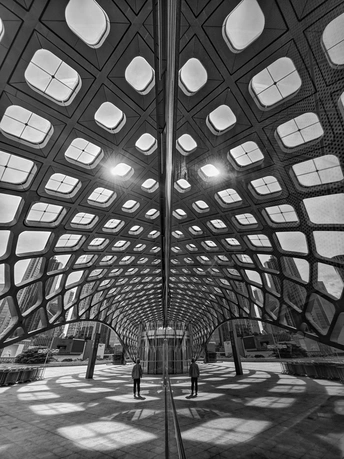 规整几何元素像编织的图案,在黑白影调里成为独特建筑篇章。
