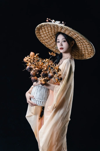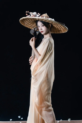 素衣斗笠逢花香