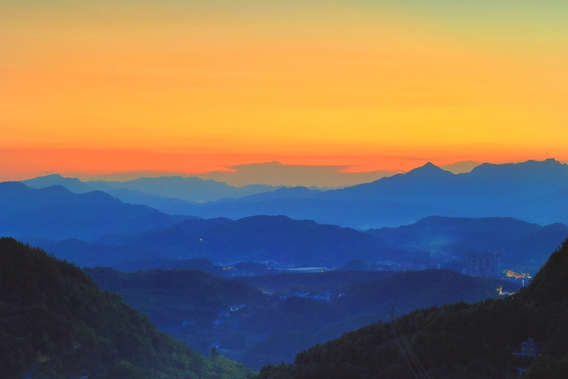 贵州,没有平原的舒展,却独拥一份“苍山如海”的绝世风华。当夕阳的余晖为天际披上橙色的纱衣,连绵群山在光影中起伏。它们层层相叠,似浩渺海洋,涌动着大自然的雄浑与壮美。山峦的轮廓在余晖里愈发深邃,每一道山梁都是时光镌刻的诗行。远处的峰尖与天边的霞光相融,如梦似幻,每一道褶皱都藏着岁月的秘密,每一片阴影都诉说着山野的静谧。这如海的苍山,是贵州独有的浪漫,于云雾间、在暮色里,诉说着大自然的鬼斧神工与无尽魅力。