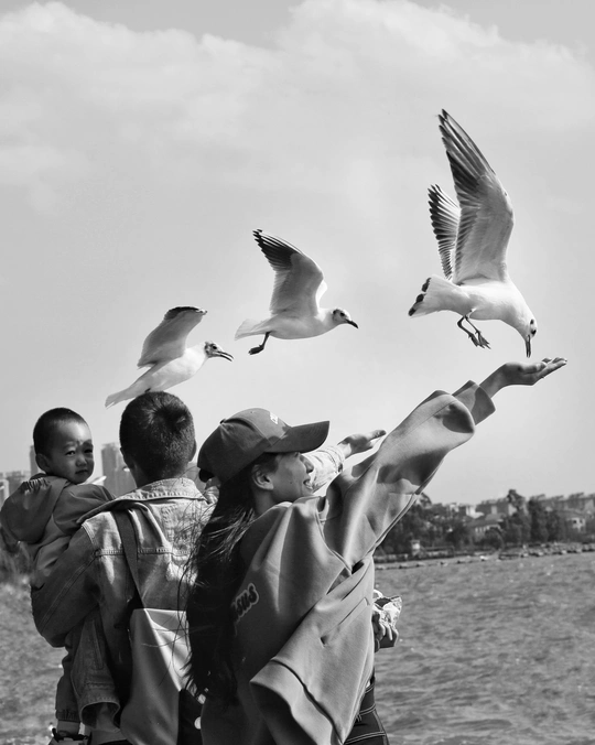 生活的美好片段,是和家人在水边邂逅飞鸟。手托食物,看海鸥振翅而来,孩子的好奇眼神、彼此的默契互动,都成了时光里的珍贵注脚,平凡日常因这些瞬间,满是温柔与诗意 。
