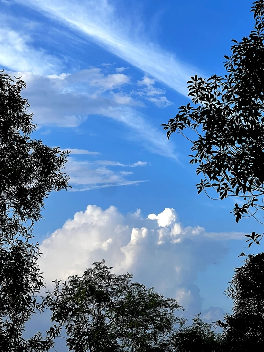 蓝天如洗,云朵像被揉碎的梦。树影在旁静静张望,风路过时,连时光都慢了下来。这是大自然写的诗,把喧嚣都过滤,只留纯粹的美好,让人忍不住驻足,和天空分享片刻宁静 。