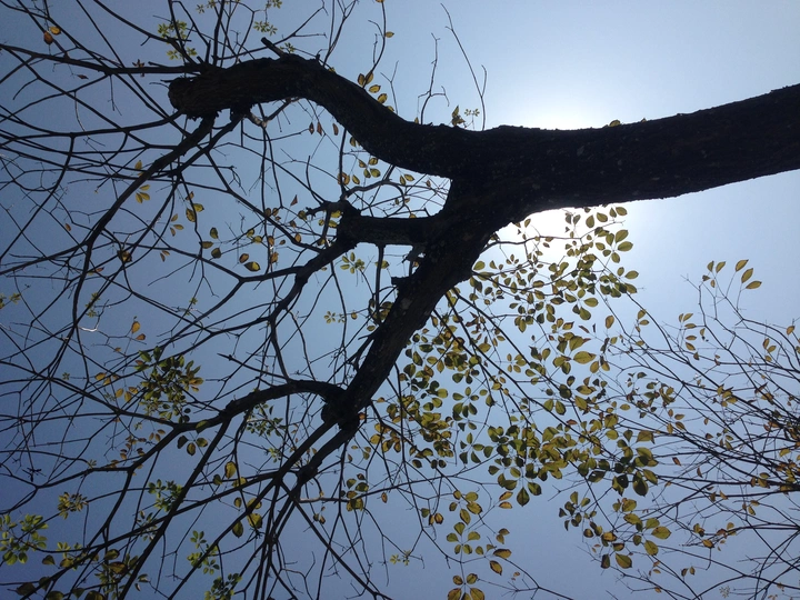 站在树下,仰头看枝桠与天空的对话。有时是稀疏枝影勾勒灰白天际,像沉默的思绪在蔓延;有时是绿叶与蓝天相拥,阳光穿透缝隙,洒下温柔碎片;还有时,粗壮枝干托着繁茂叶丛,在日光里肆意生长。这些树,以不同姿态记录时光,每一次仰望,都能撞见自然藏在枝桠间的小确幸,让人心安 。