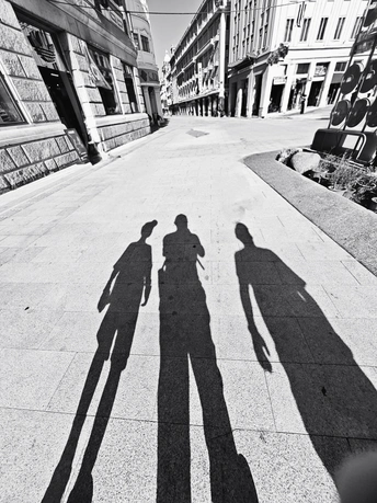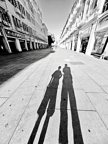 光把我们的形,拓在老街石板。 影子并肩,像无声的絮语, 在岁月打磨的路上, 每一步,都印着同行的温度, 这是属于我们的, 光影里的小团圆 。