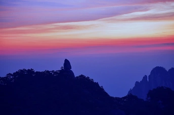 晚霞烧透西天,像是谁把熔金倾进云海;石猴踞于峰顶,沐着霞光,剪影锋利得仿佛要划开暮色,那一刻,它不再只是冷硬的岩石,而是被夕辉点活的心脏,在万山之巅静静跳动。