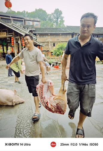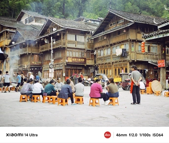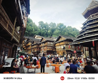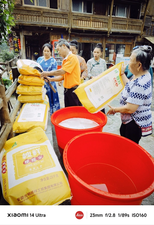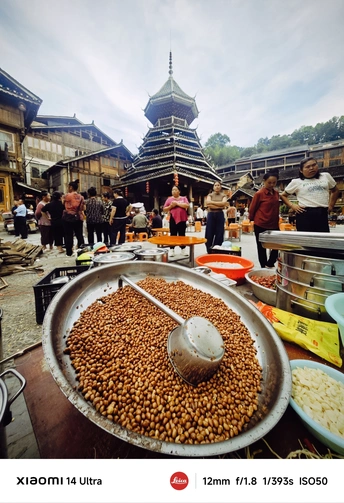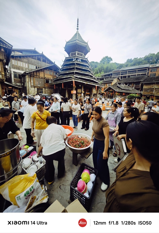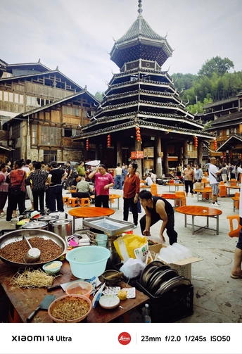 在肇兴侗寨,那一座座古朴而庄重的鼓楼,宛如岁月长河中屹立不倒的文化灯塔,静静诉说着侗家人的故事,更是村里当之无愧的文化娱乐核心地带。每逢村里有丧喜之事,这里便成了情感汇聚与交融的舞台。喜事时,欢声笑语如潺潺溪流,流淌在鼓楼的每一寸空间;丧事时,悲戚的唢呐声与低沉的哭声交织,承载着对逝者的缅怀与哀思。 无论何种场合,村里人都会自发地聚集于此,纷纷伸出援手。男人们挽起袖子,熟练地操持着杀猪宰羊的活计;女人们则系着围裙,在露天厨房中忙碌穿梭,不一会儿,一桌桌丰盛的酒席便摆满了鼓楼内外,众人围坐在一起,共享这充满温情与烟火气的时刻,整个鼓楼都沉浸在一片热闹非凡的氛围之中。