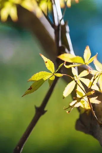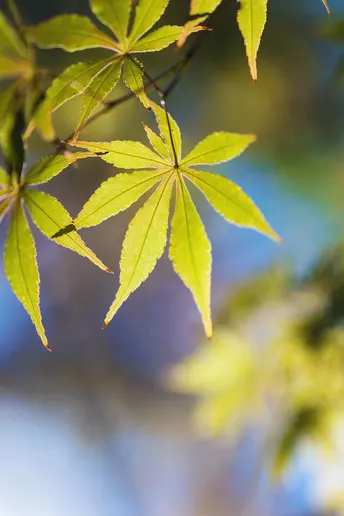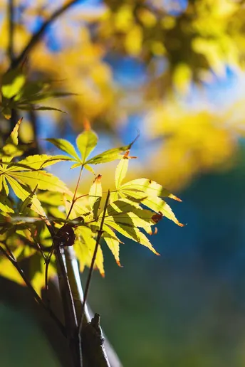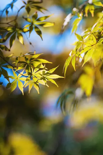 阳光下的枫叶很美