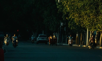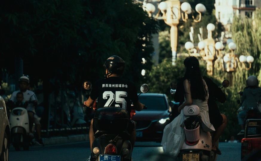 夕阳熔金,为街道与行人镀上温柔的轮廓。光流泻于肩头、发梢,点亮每一双奔向家的眼睛。身影被拉长,与暮色交融,直至没入温暖的深处。 2025年8月28日拍摄于贵州省黔西南布依族苗族自治州望谟县县城。