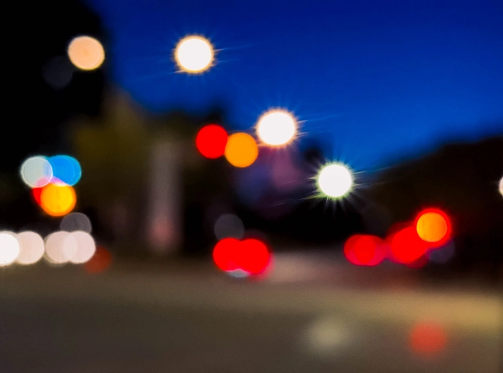 将夜的具象拆解,化作光斑像素。红绿灯的色彩、路灯的星芒,拼贴成抽象诗行,在朦胧里,读城市夜晚的独特情绪