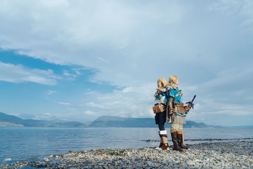 #塞尔达传说 #林克 #塞尔达 #cos 这是去云南旅拍时拍的,当时主要是拍视频,抽空拍了这几张照片。原本是打算为了做视频封面拍的,一不小心拍多了。 前面几张是大理洱海边拍的,骑马是丽江拍的,另外湖边的木头上那张,其实对面理论上是玉龙雪山,可惜当天大雾。[哭惹R] coser@香不拉几✨ 和桃桃