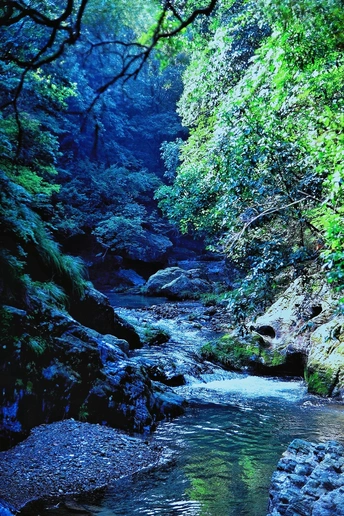 峡谷深处,一线泉声把万丈寂静缝成幽蓝色的诗。