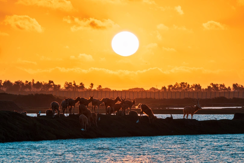 日出时见群鹿