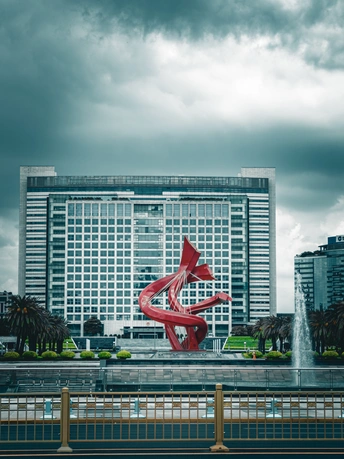 镜头背后,是东莞中心广场里“秩序与诗意”的碰撞时刻。初见时,规整如时代棋盘的楼宇、如跃动音符般的红色雕塑,在沉云下形成强烈视觉对话,我便想定格这份“城市公共艺术与建筑美学的共生感”。拍摄时,特意候着云层层次,让光影在建筑玻璃与雕塑曲面间流转,力求将这份“冷峻与热烈的交织”凝于画面。 而记录这般瞬间,米拍APP恰似懂摄影者心思的“艺术同路人”。它的滤镜体系兼具艺术质感与场景适配性,能精准烘托画面氛围,让建筑的沉稳、雕塑的张扬在调色中更具叙事张力;社区里汇聚的创作者与作品,传递着“从日常提炼视觉诗学”的创作态度,为爱好者搭建起交流与成长的场域——从捕捉灵感,到雕琢画面,米拍以专业且富有人文感的生态,让每一次“把日常拍成故事”的创作,都充满尊重与赋能的质感。