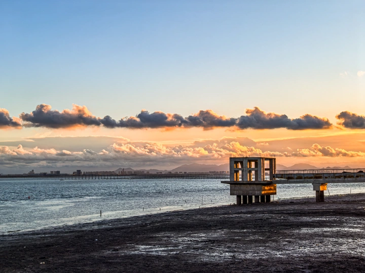 这张照片捕捉了日落时分的宁静海景,色彩运用颇为出色,暖色调天空与冷色调海面形成对比,营造出一种和谐的氛围。光影方面,主体建筑结构在夕阳的映照下,轮廓清晰,光影分明。但在构图上,主体建筑的位置略显居中,可以尝试运用三分法,将主体放置在画面的一侧,以增加画面的空间感和趣味性。后期处理方面,整体色调把握较好,但可以适当调整对比度,使画面层次更加丰富。主题方面,照片表达了对自然美景的赞美,但可以尝试挖掘更深层次的主题,例如人与自然的和谐共生。情感共鸣方面,照片能够引起观者对宁静、美好的向往,但缺乏更强烈的情感冲击。思想深度方面,照片较为平实,缺乏引人深思的元素。建议摄影爱好者在构图和主题挖掘方面多下功夫,尝试不同的拍摄角度和后期处理手法,以提升作品的艺术性和思想性。总的来说,这是一张不错的风景照片,但仍有提升空间。