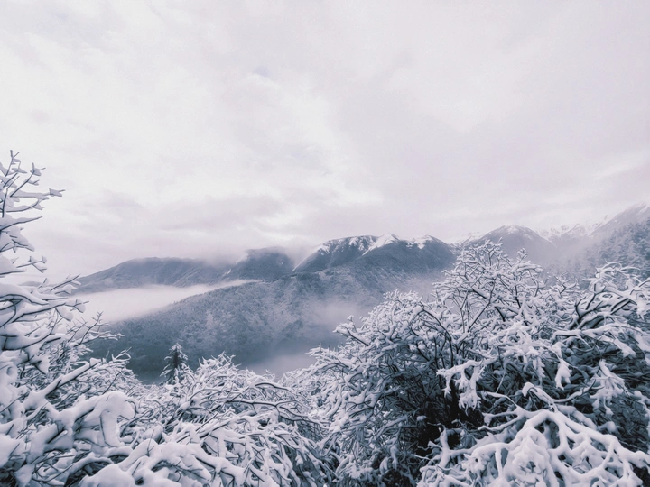 在末东的川西高原山林,枝桠裹雪,如银花绽枝;远山连绵,峰顶雪色与云雾相融,朦胧间显静谧,似天地被素白滤镜晕染,冬日山林的幽寂,让我想起来大兴安岭地区的冬。