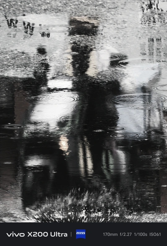 下雨天也能出片!用vivo X200 Ultra 随手一拍,路面的水洼成了天然的“镜面”。雨滴落下,涟漪圈圈,把周遭的景象都揉进这汪水里,模糊又梦幻,像是闯入了一个超现实的小世界~不得不说,vivo X200 Ultra 的成像太绝啦,细节和色彩都稳稳拿捏,雨天的氛围感直接拉满,这波随手拍我能吹一年!