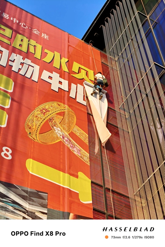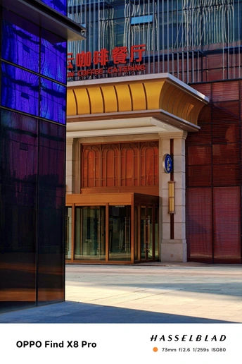 2025年9月1日 这张照片捕捉了建筑的局部,色彩搭配和谐,蓝色与橙色的对比鲜明,引人注目。构图上,利用建筑的线条和几何形状,营造出一种秩序感和空间感。光线运用得当,地面上的阴影增加了画面的层次感和立体感。整体氛围宁静而现代。如果能更注重细节的捕捉,例如旋转门的纹理或者建筑表面的质感,也许能进一步提升作品的艺术价值。