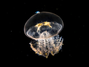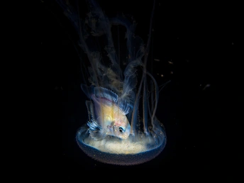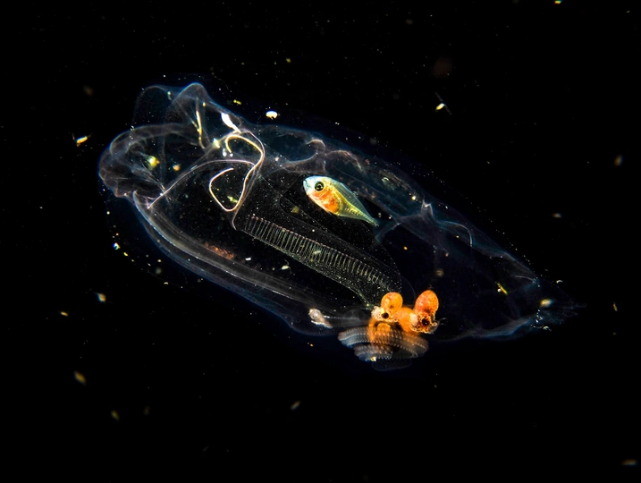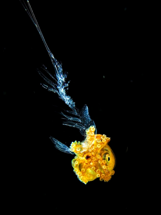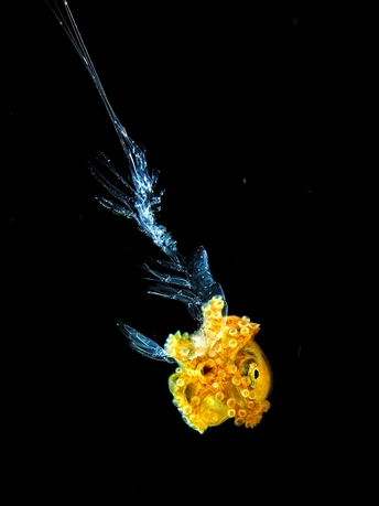 在城市看不见星空,在浅海看不见深渊。而在菲律宾阿尼洛的夜晚,当我背上气瓶,跳入漆黑的无底海域,黑夜里深海的奇迹开始悄然展开。 黑水摄影是一种在深夜开放海域中拍摄浮游生物与深海幼体的方式。每当夜幕降临,成千上万来自深海的透明生命体沿光线上升,在水面数十米处短暂停留——这些生命形态在白天从未现身,肉眼难以察觉,只有在特定光照与极端条件下才会“显影”。 这组作品全部使用vivo X200 Pro于20250207-20250219期间拍摄,记录了栉水母、樽海鞘、比目鱼幼体、莱式拟乌贼、玉鲳与水母等典型代表。它们如幽灵般在黑海中漂浮,展现出令人惊叹的透明构造、微妙的对称、以及仿佛来自异星的结构设计。 P1:马来沙水母与玉鲳 P2:斑马章鱼幼体 P3:莱式拟乌贼 P4:鞭状克朗水母与鲳鱼幼体 P5:樽海鞘 P6:比目鱼幼体 P7:柳叶鳗幼体 P8:瓜形栉水母 P9:捕食中的船蛸