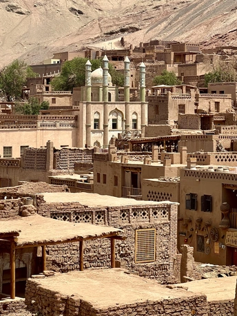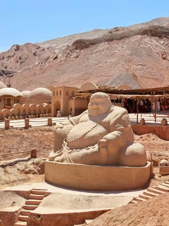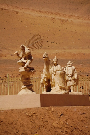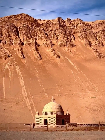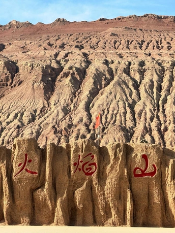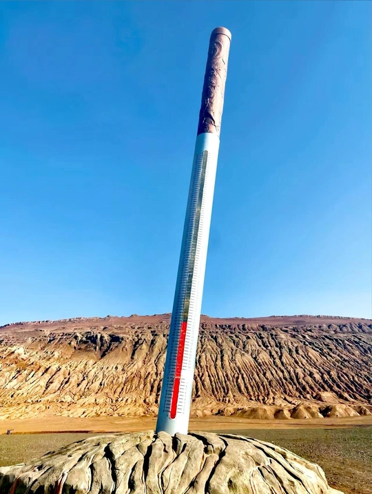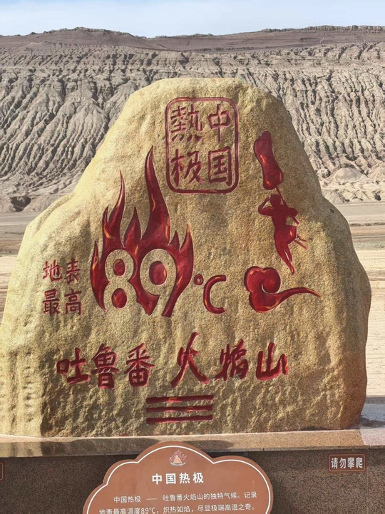 踏入新疆吐鲁番盆地,火焰山的赤色山体便撞入眼帘。寸草不生的岩壁褶皱如烈焰腾跃,正午阳光泼洒其上,蒸腾的热浪扭曲空气,仿佛下一秒就会燃起熊熊火光。 这里是中国最热的地方,夏季地表温度常超70℃,沙窝里能烤熟鸡蛋,赤脚踩在地面不过几秒,便会被烫得连连后退。但火焰山的魅力,从不止于“热”。 沿着步道前行,《西游记》里孙悟空借芭蕉扇灭火的雕塑静静矗立,让神话与现实在此交汇。登上观景台远眺,赤色山峦绵延数十里,与远处的绿洲、葡萄沟形成鲜明对比——一边是火的炽烈,一边是水的温柔,勾勒出新疆大地的神奇反差。 待到黄昏,夕阳为火焰山镀上金红,岩壁的纹路在暮色中更显深邃,热浪渐退,晚风带来一丝凉爽。此时驻足,看落日沉入山巅,方能懂为何这片土地,能在千百年里,让旅人甘愿为它的炽热与壮美驻足。 火焰山,是大自然用高温与赤色写就的诗篇,每一寸土地都在诉说着西域的豪迈与苍茫。