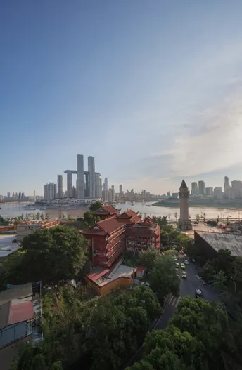 来福士、千佛寺,鼓楼同框