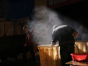 在这烟火气十足的场景里,水汽与光影交织。平凡的劳作,也因这束光,有了别样的诗意,生活的真味,大抵就藏在这些寻常的瞬间里。