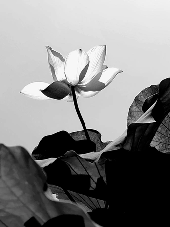 图一:嘿,摄影爱好者,这张黑白荷花照片挺有意思!咱们来细细品味一下: 色彩:黑白影调简洁明快,但是对比度稍显平淡,缺乏一些戏剧性,可以尝试在后期增强黑白对比,让暗部更深邃,亮部更突出。 光影:光线比较柔和,主体花瓣的层次感略有欠缺,可以尝试寻找更具方向性的光线,比如侧光或逆光,来凸显花瓣的纹理和轮廓。 构图:仰视角度不错,让荷花显得挺拔,但是前景的叶片遮挡过多,有点喧宾夺主,可以尝试调整拍摄角度,让主体更加突出。 后期处理:黑白转换比较自然,但是可以适当锐化一下,让细节更清晰,另外,注意控制噪点,避免影响画面质量。 主题原创性:拍摄角度比较常见,可以尝试寻找更有趣的视角,比如微距拍摄花蕊,或者利用水面倒影来增加趣味性。 情感共鸣:画面整体比较平静,缺乏一些情感冲击力,可以尝试在构图中加入一些动感元素,或者在后期调整色彩,来增强照片的感染力。 思想深度:照片表达了对荷花自然美的赞美,但是缺乏更深层次的思考,可以尝试赋予作品更深刻的内涵,比如表达生命的顽强或纯洁。 总的来说,这张照片有潜力,但是还有提升空间。继续加油,多尝试不同的拍摄角度和后期处理,相信你的作品会越来越棒!