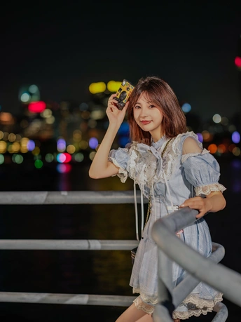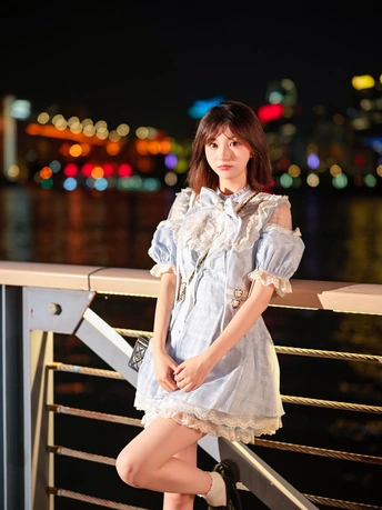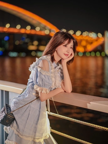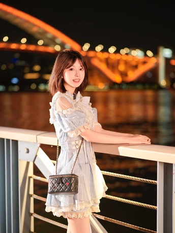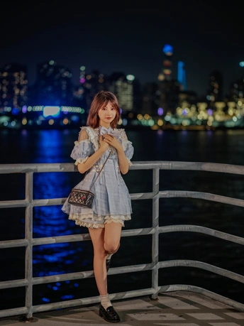 江边夜晚夏末闲暇