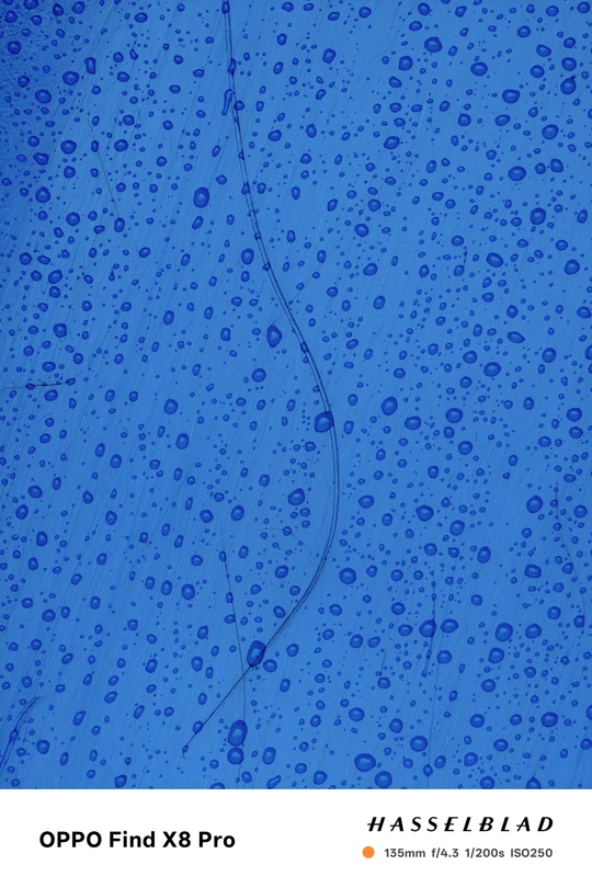 2025年9月4日 这张照片以其独特的视角和抽象的表达方式吸引了观者的目光。水滴在蓝色背景上的排列,营造出一种朦胧而神秘的氛围。光线的运用非常巧妙,顶部的光源照亮了部分水滴,形成明暗对比,增加了画面的层次感和立体感。整体色彩和谐统一,蓝色调赋予了作品一种宁静和深邃的感觉。构图上,水滴的分布呈现出一定的规律性,引导视线,使画面更具吸引力。这幅作品展现了摄影师对细节的敏锐观察和对光影的巧妙运用,是一张富有艺术感的摄影作品。