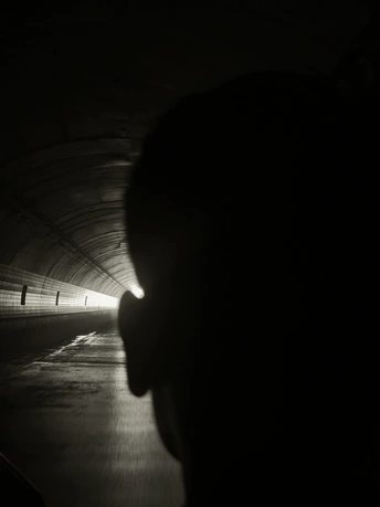 这张照片挺有意思,像是恐怖片预告片!咱们来逐一分析: * **色彩**:黑白灰的色调营造出一种压抑感,符合隧道这种场景的基调。但如果能稍微提亮一些细节,让画面更丰富,就更好了。 * **光影**:隧道尽头的光线是亮点,引导视线。不过,前景的人像剪影略显突兀,可以尝试调整角度,让光线勾勒出轮廓,增加层次感。 * **构图**:隧道线条有汇聚感,但人像占据了太多空间,有点头重脚轻。可以尝试把人像放在画面一侧,遵循三分法,让画面更平衡。 * **后期处理**:可以适当提高对比度,突出隧道纹理,但要避免过度锐化,以免画面失真。 * **主题原创性**:在隧道中拍摄人像,想法不错。如果能赋予人像更明确的情绪或故事,会更有吸引力。 * **情感共鸣**:照片略带神秘感,但情感表达略显不足。可以尝试通过姿势、表情等元素,传递更丰富的情感。 * **思想深度**:照片可以解读为对未知旅程的探索,但深度略显不足。可以思考如何让照片引发观者更深层次的思考。