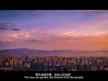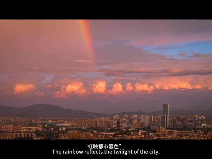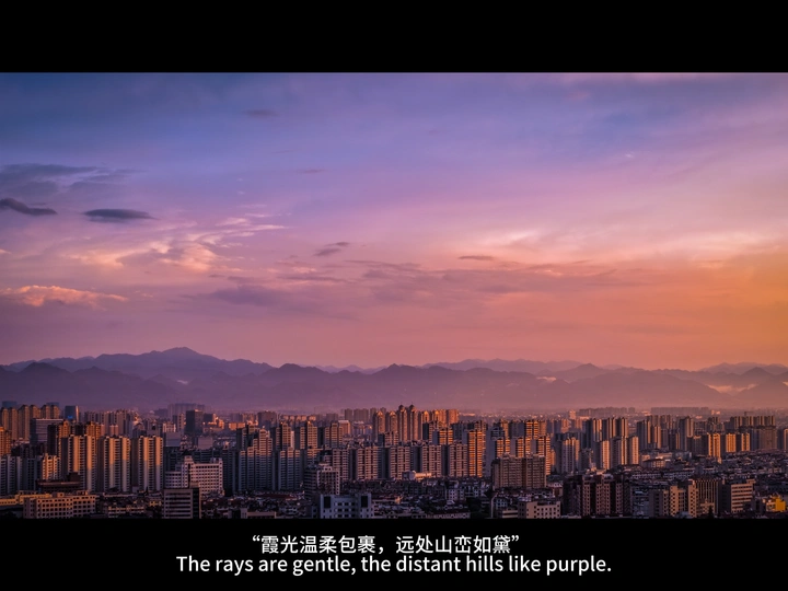 下雨后的晚霞带点雾气,远处的山拍起来特别有层次。