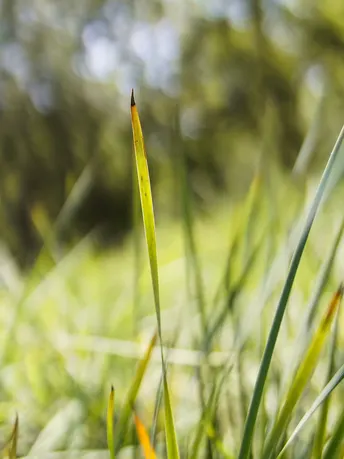 夏末的风还带着夏的余温,却已在草叶尖梢悄悄晕染出第一抹黄。 那黄,是从绿意里挣扎着探出来的,像时光在草叶上烙下的浅金印记。有的叶片尖端只染了一小截,黄绿相间,是夏与秋无声的交界;有的已晕开大半,在阳光里泛着暖调的光,似在宣告季节的更迭。 它们藏在葱郁的草间,于微风中轻轻颤动,是夏末最温柔的暗示,也是秋意最初的呢喃,在不经意间,便将季节的故事写在了叶尖的一抹黄里。
