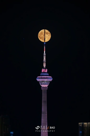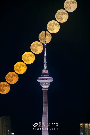 科学摄影的魅力在于精准计算,时间,位置,恰到好处的构图。在月升开始,用软件计算好机位,提前到达,等待月亮徐徐升起,穿过天塔。