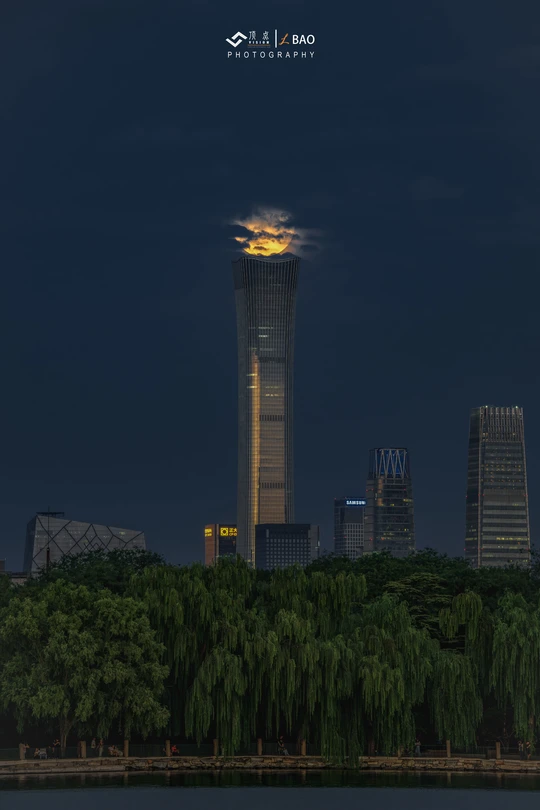 差一点就放弃了,在最后一刻月亮出来了,上演中国尊下的彩云追月。