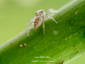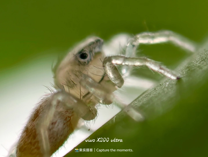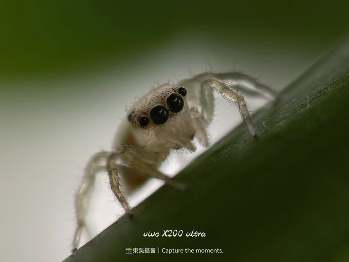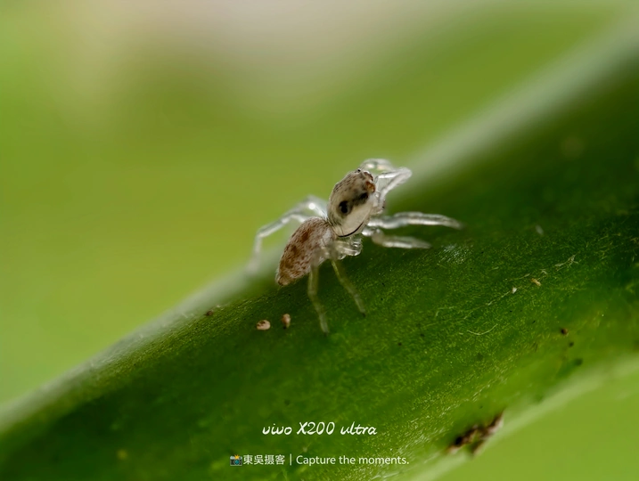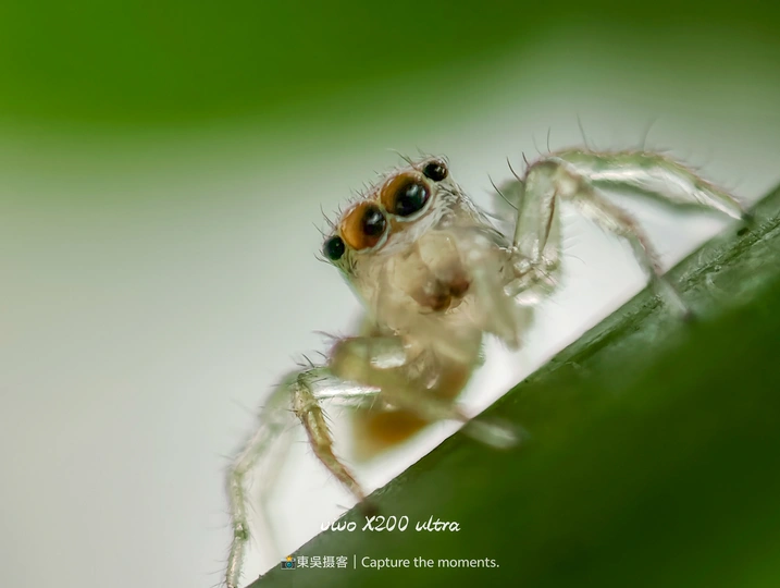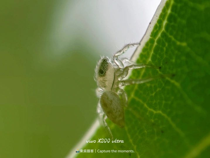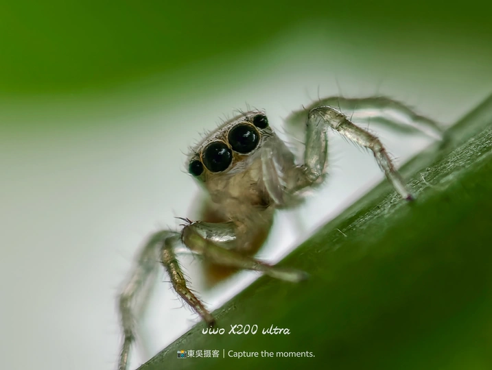 微观世界里,这只跳蛛如灵动的小精灵。澄澈的眼神、纤细的绒毛、半透明的肢体,在绿叶映衬下尽显精巧。多角度的定格,清晰呈现它每一处细微姿态,仿佛能窥见它感知世界时的专注,尽显自然造物在微小生命上的精妙手笔。