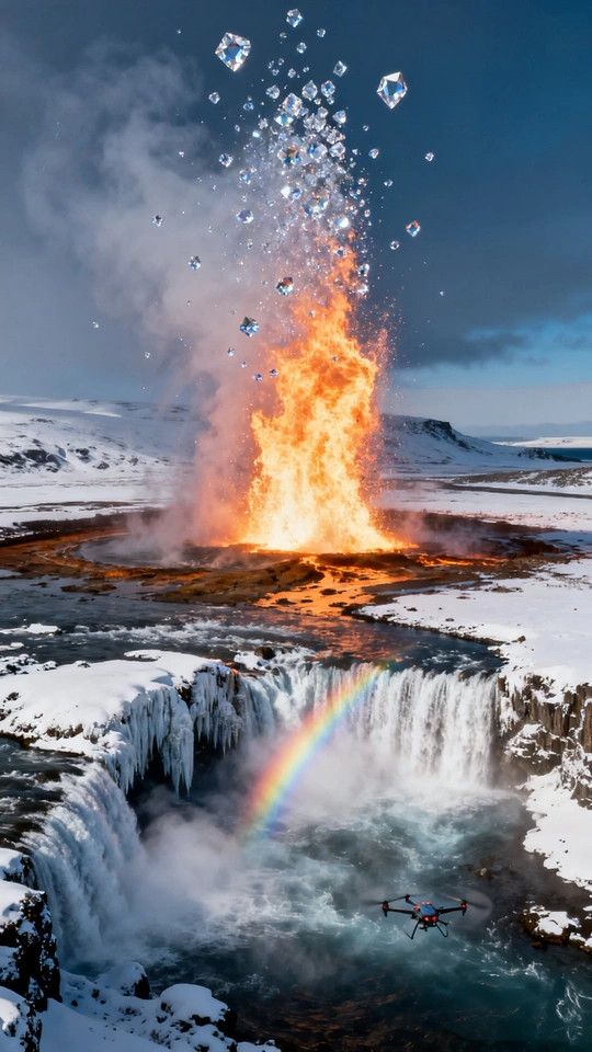 风把云揉碎 撒在苔原之上 每一块石头都带着冰川的体温 沉默,却比任何语言都锋利 火山在海底写诗 黑色的玄武岩是未干的墨迹 蒸汽从裂缝里钻出来 吻了吻极光的裙角 便消散在极夜的呼吸里 没有喧嚣的注脚 只有海浪反复擦拭着海岸 把时间磨成细沙 当第一缕阳光爬上冰盖 整个世界,都在悄悄解冻