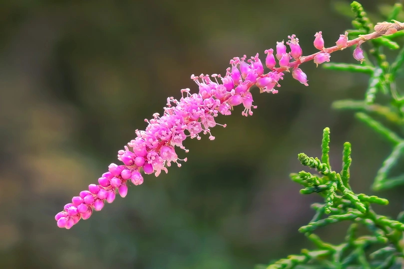 生长在沙漠戈壁里的耐干旱植物红柳花开了