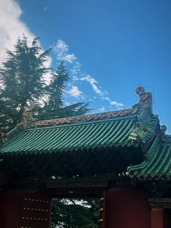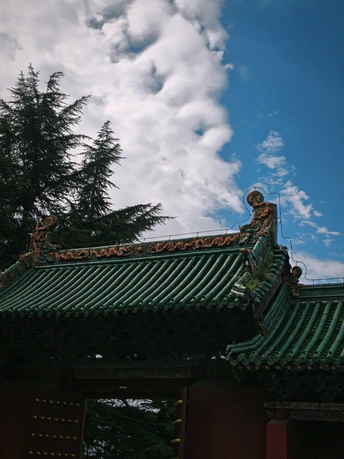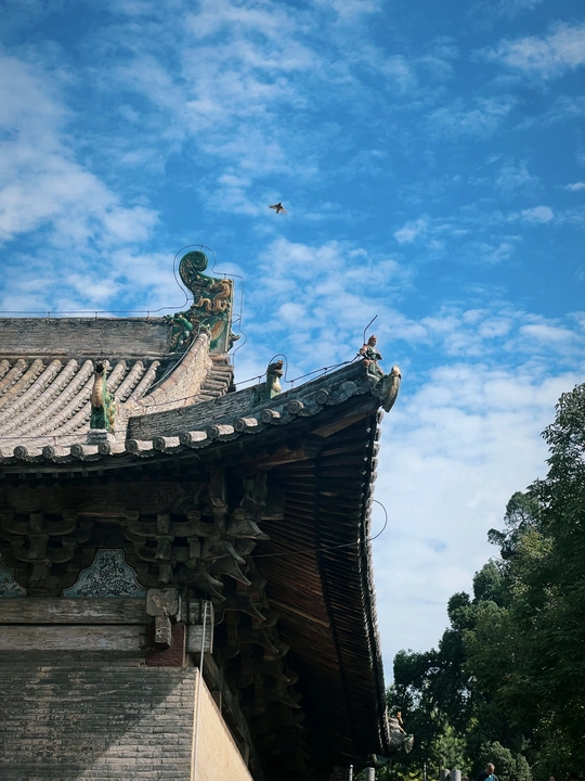 雨过天晴之阳台宫, 檐角垂落的水珠还在闪着光, 远处山尖被洗得清亮, 连掠过的飞鸟都像沾了几分温柔, 漫步走过,满心都是通透的舒畅。