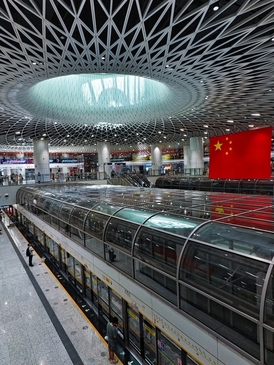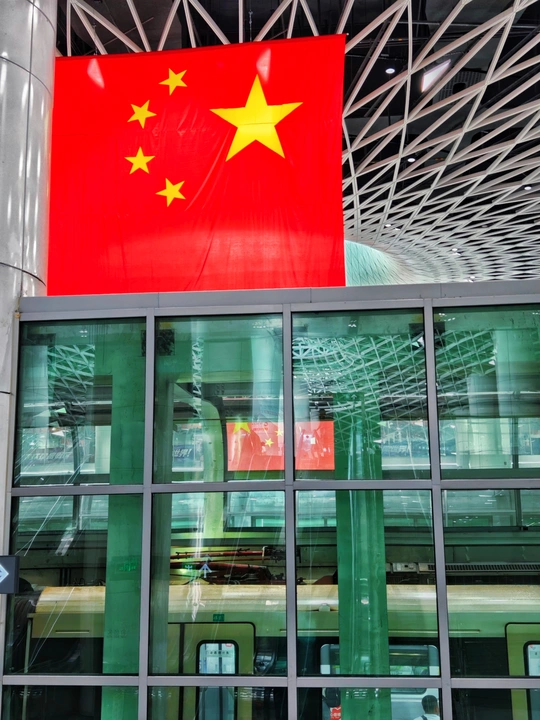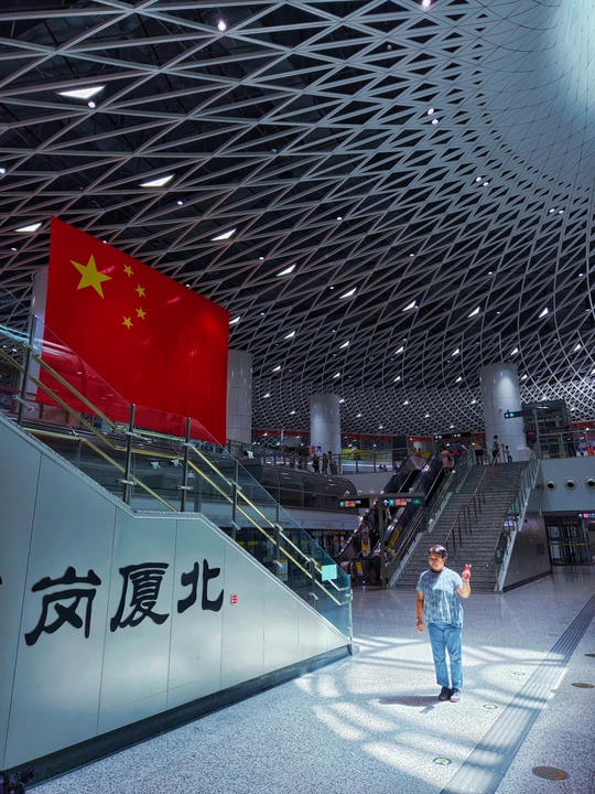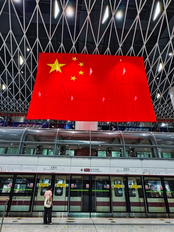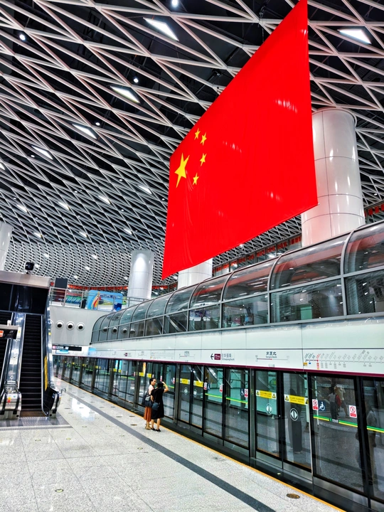 岗厦北地铁站的现代建筑线条,遇上鲜艳的五星红旗,是深圳速度与家国情怀的完美碰撞,一眼心动,满是骄傲。