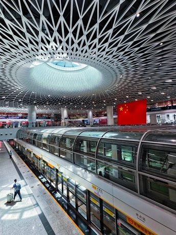 岗厦北:地铁里的中国红