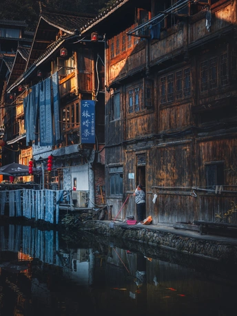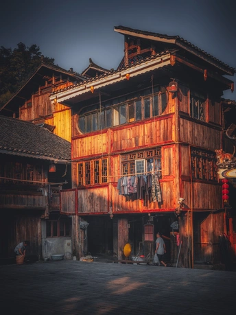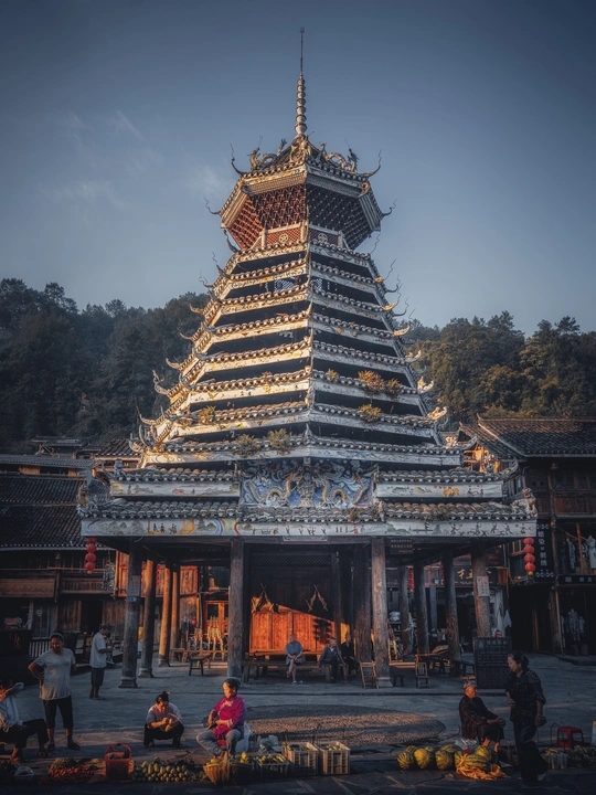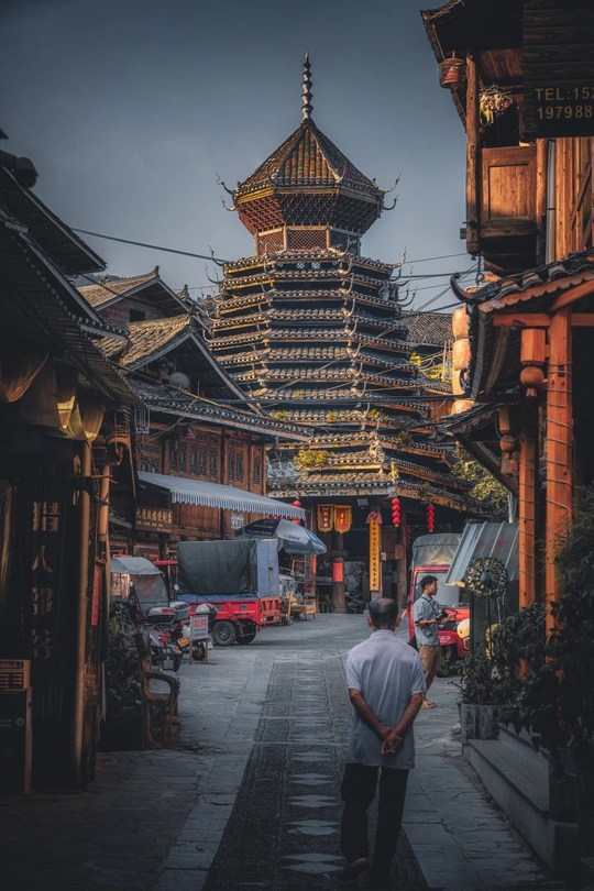 当第一缕光吻醒鼓楼,肇兴侗寨悄然苏醒。晨雾、炊烟、劳作的身影,交织成最动人的侗乡晨曲。