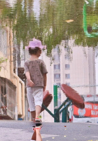 雨后的小区,像被施了魔法。积水里倒映着楼宇、树木,模糊又梦幻。行人悠悠走过,孩子在小乐园玩耍,连空气里都带着清新的味道,平凡的日常也变得格外美好。