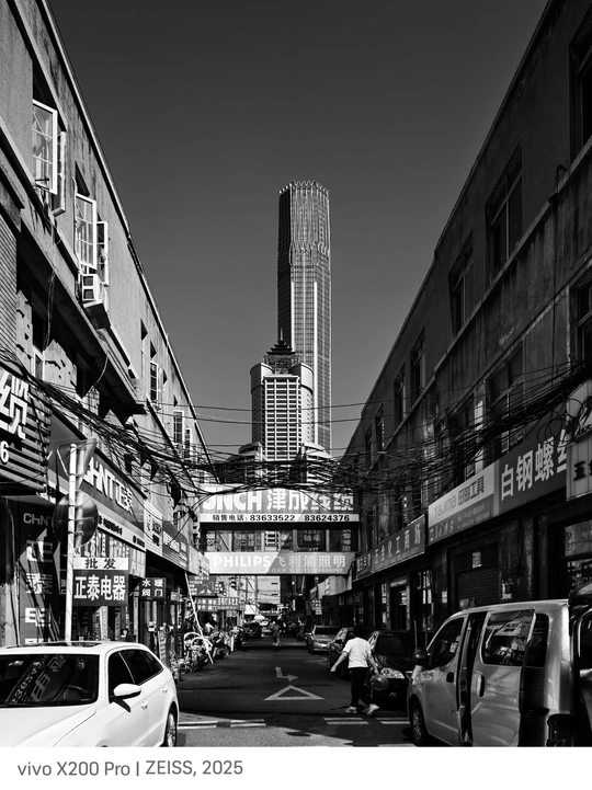 是城市的野心,玻璃幕墙反射着现代的光,线条凌厉又充满力量。 从不同角度去看,老与新的碰撞都格外动人:有时是拥挤小巷里突然耸立的高楼,像从旧梦里闯进了未来;有时是翻新的街区仍留着老建筑的影子,新旧交融得恰好。 大连的魅力,就藏在这些反差里。