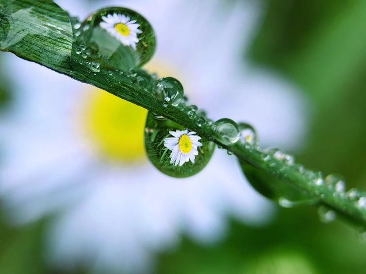 晨露轻吻草叶,将雏菊的倩影锁进晶莹的梦。