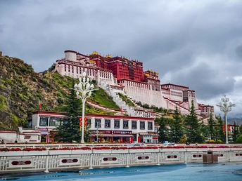 云浪悬天际,布宫卧山城,将历史的传承与生活的热闹,锁进云层。红墙、商铺、绿植,撞出人文韵律。光影让建筑肌理、街景明暗清晰,是历史与日常的温柔对话。