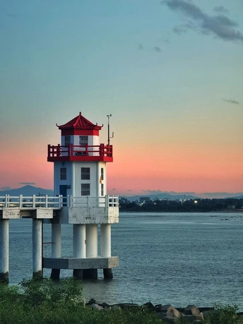 晨光下的汕头东海岸灯塔,位于外砂河出海口西侧。