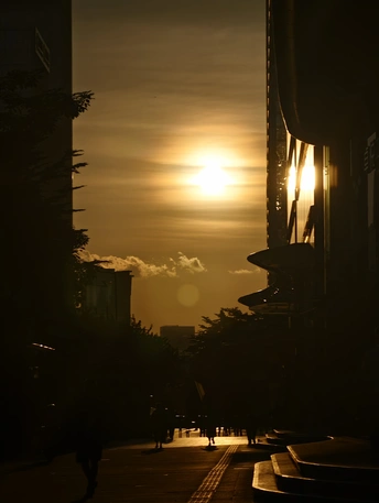 台风前,必有好风景,这日落橙黄,给城市披上了金黄色的新皮肤,原图直出,既然如此之美。