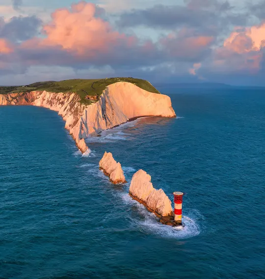 这可能是英国最小众的白崖,极少人拍过。它位于英吉利海峡的小岛,跟法国的诺曼底隔海相望。一连串白色尖崖延伸向大海,此刻的落日,仿佛交织了梵高笔下的浓烈与特纳画中的浪漫