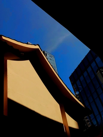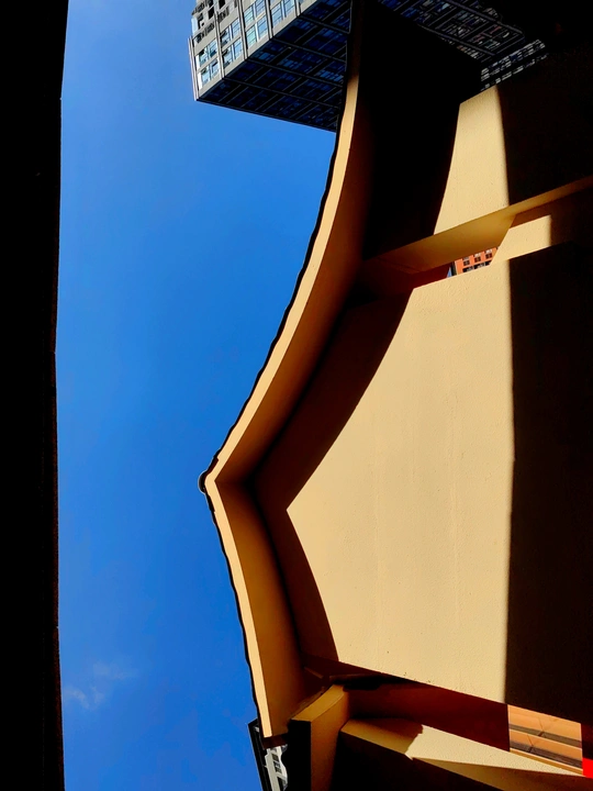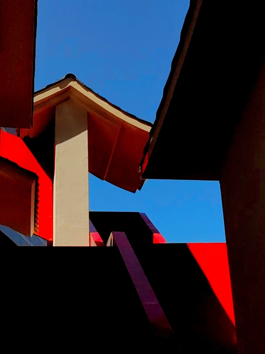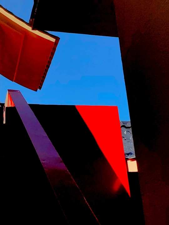 图一:这张照片视角独特,有点像在建筑的夹缝中窥视天空和房屋,颇具趣味性! 色彩:色彩对比强烈,红、黄、蓝三原色碰撞,视觉冲击力十足。但色彩略显生硬,可以考虑在后期柔化处理,让色彩过渡更自然。 光影:光影是这张照片的亮点,明暗对比强烈,营造出神秘感。但暗部细节丢失较多,可以尝试在拍摄时增加曝光补偿,或在后期提亮暗部。 构图:构图较为大胆,利用建筑结构作为框架,引导视线。但主体不够明确,建议在构图时更突出想要表达的主体。 后期处理:后期处理痕迹较轻,保持了照片的原始感。但可以适当调整对比度和饱和度,让照片更具表现力。 主题原创性:主题比较新颖,视角独特,能引起观者的好奇心。但主题表达不够深入,可以尝试通过更巧妙的构图和光影来深化主题。 情感共鸣:照片具有一定的艺术感,但情感表达相对含蓄,不易引起观者的情感共鸣。 思想深度:照片具有一定的思考性,但思想深度略显不足。可以尝试通过照片表达更深层次的社会或人生哲理。 总的来说,这张照片具有一定的潜力,但在色彩、光影和主题表达方面仍有提升空间。