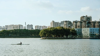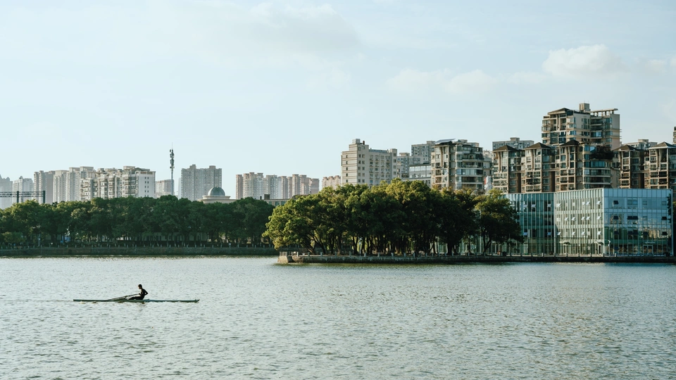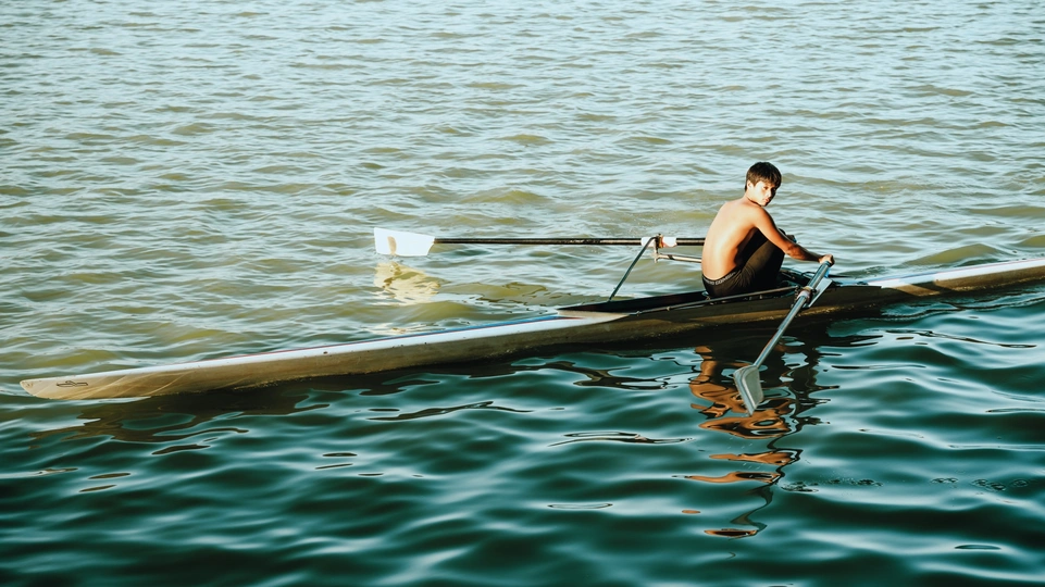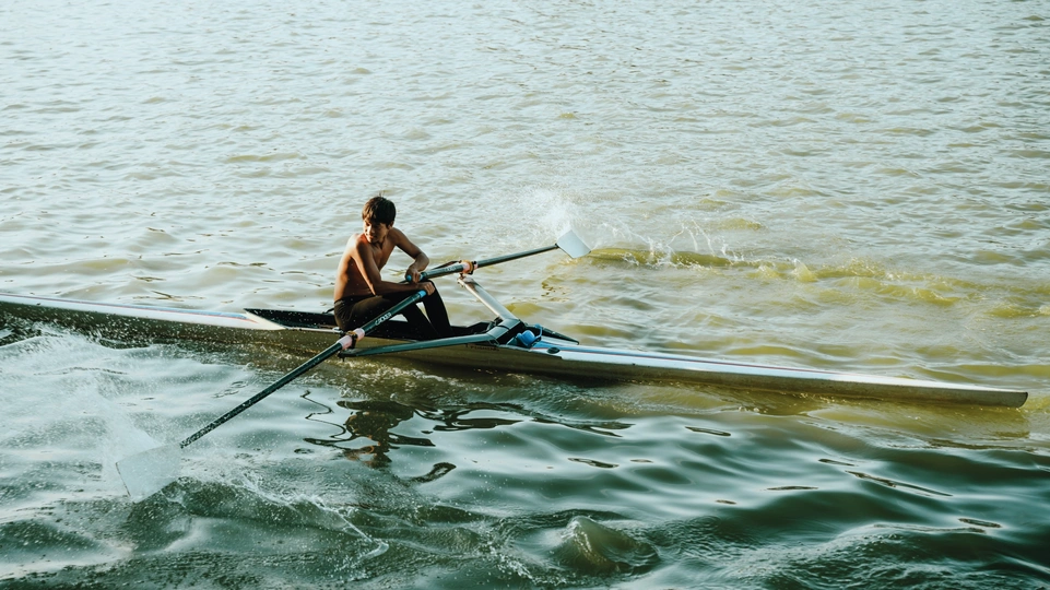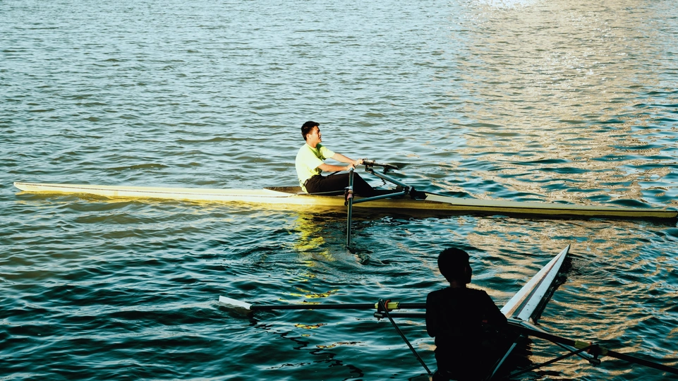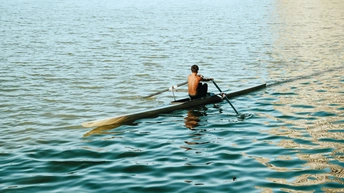 拍摄于小河边的对划艇有兴趣爱好的人锻炼的场景