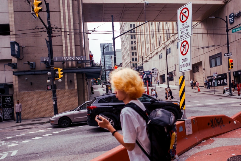 市民、游客、警察、流浪者等组成光怪陆离、色彩缤纷的街头人物场景,有悲有喜,都在为更好的生存在努力。镜头记录当下。
