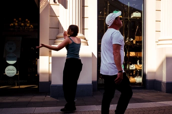 一对情侣开心的在街头忘情的舞蹈,也许是因为工作加薪?或许是婚礼要举行?不禁被他们的情绪感染到了。是的,生活需要阳光、温暖和希望。